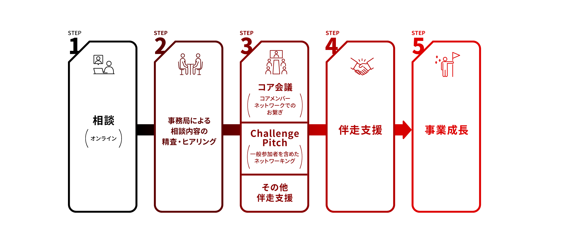 ――新事業共創プラットフォームの枠組の中で、みなさんが支援を始めるまでの流れを教えていただけますか?