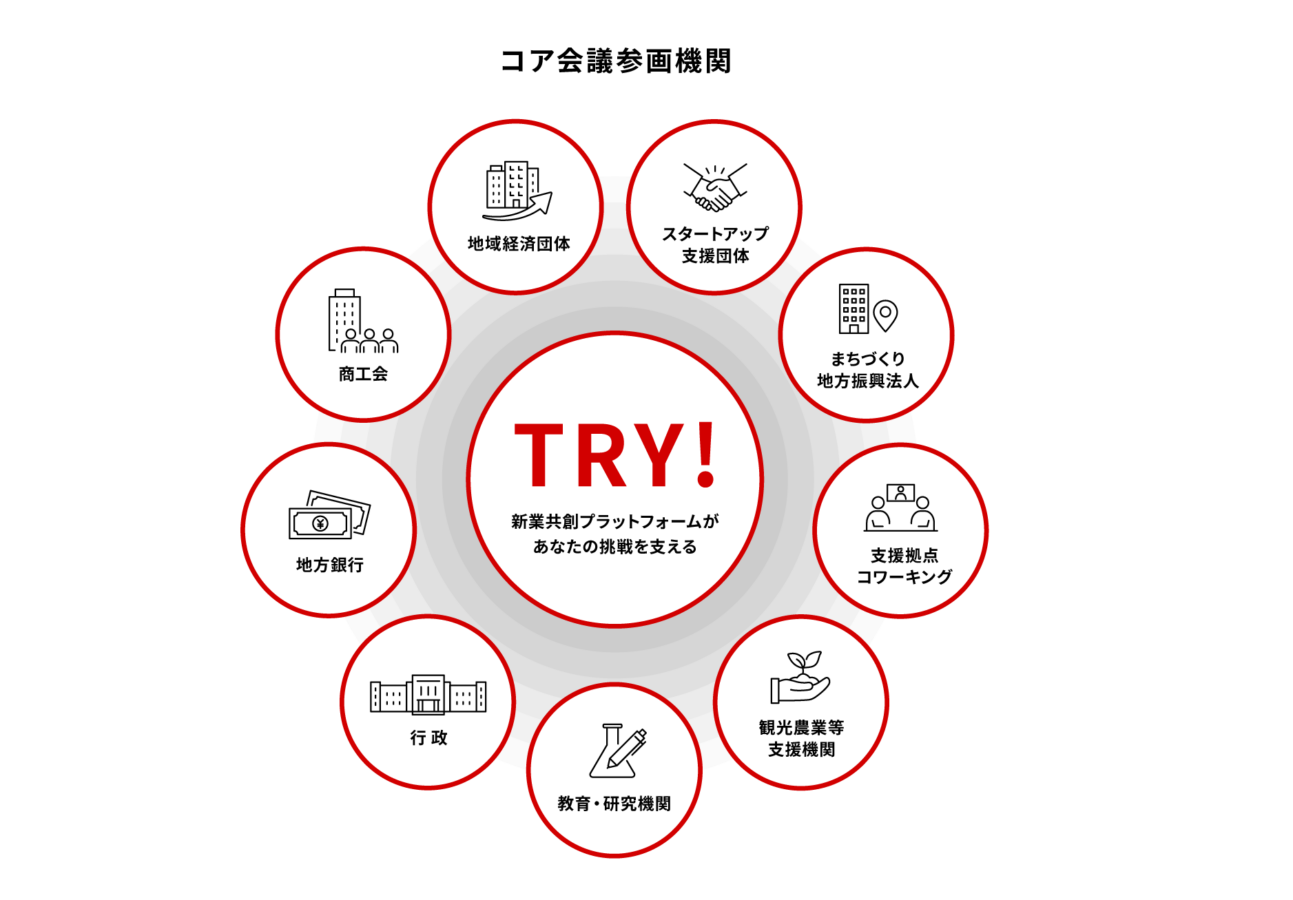 山梨県では、県内の企業や団体、金融機関、行政等が連携し、山梨での挑戦を支援する新事業共創プラットフォーム「TRY!YAMANASHI!」を展開しています。