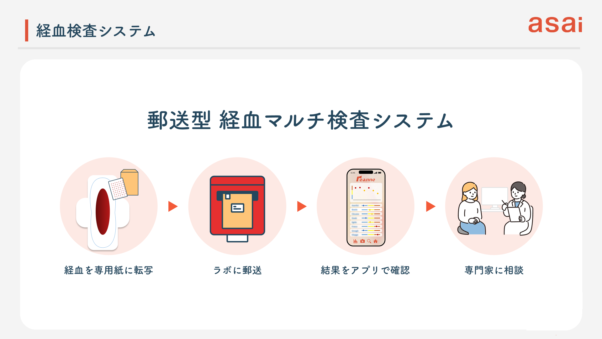自治体ではある一定の年齢になると、無料や安価で子宮がん検診や乳がん検診などを受けることができますが、健康に関心がなければ、そうした機会を見過ごしてしまうこともあるでしょう。asaiでは、それほど健康やヘルスケアに関心がなくても、より気軽な方法で自分の不調に気づくことができるような社会を実現したいんです。