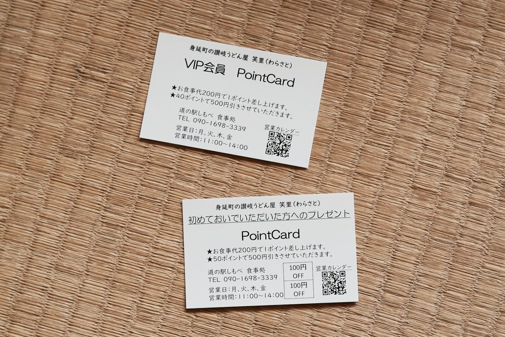 地元の方にたくさん足を運んでいただきたいから、ポイントカードは有効期限なし。スタンプがいっぱいになると500円引きになるだけでなく、VIP会員用のポイントカードがもらえる。