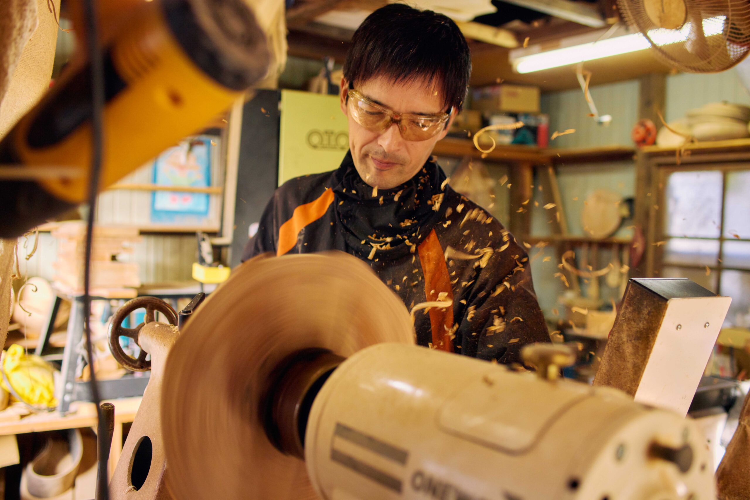 地元で採れた木材を見極め、無駄なく器として削り出す。見極めは、これまでの経験がものをいう。