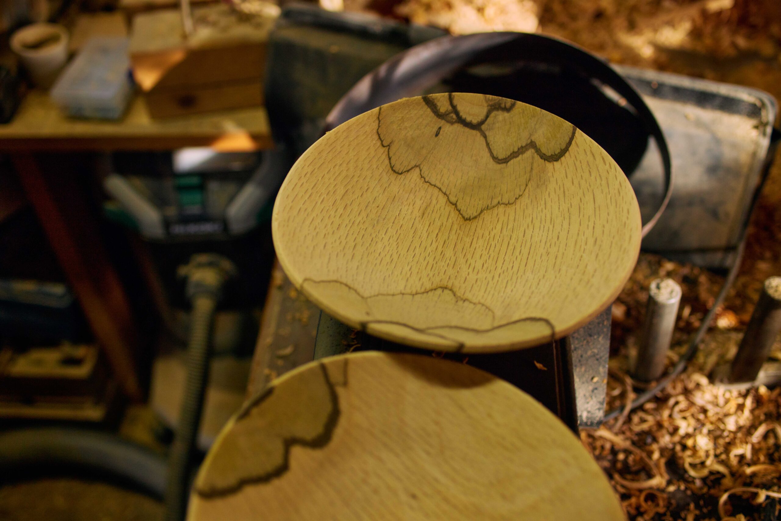 グリーンウッドターニングは、生木を使う制作技法。割れないようにするテクニックが必要ですが、ナマモノを扱う面白さがあります。
