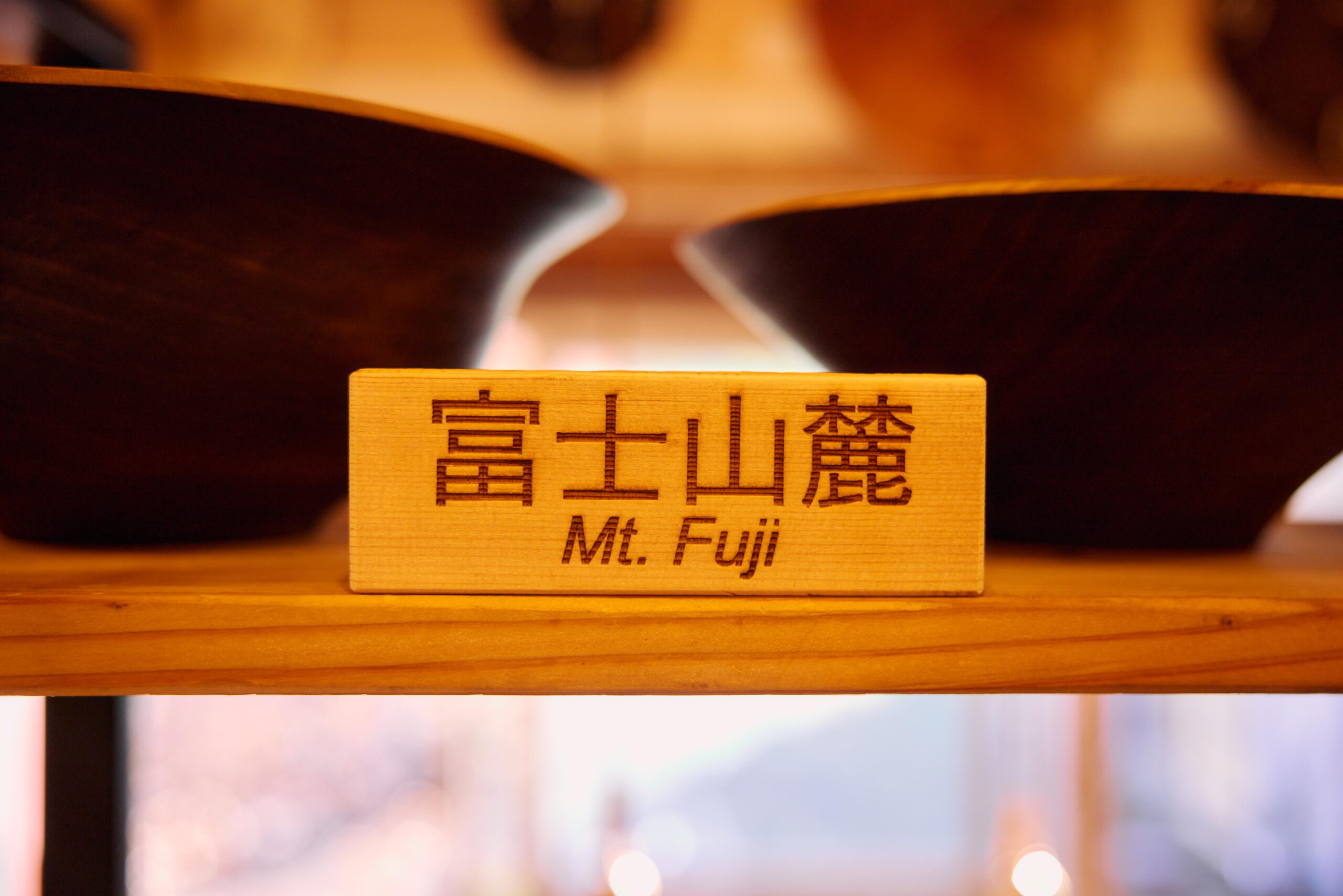 ショップ内には、どこの木材から作られたか書かれたポップが。