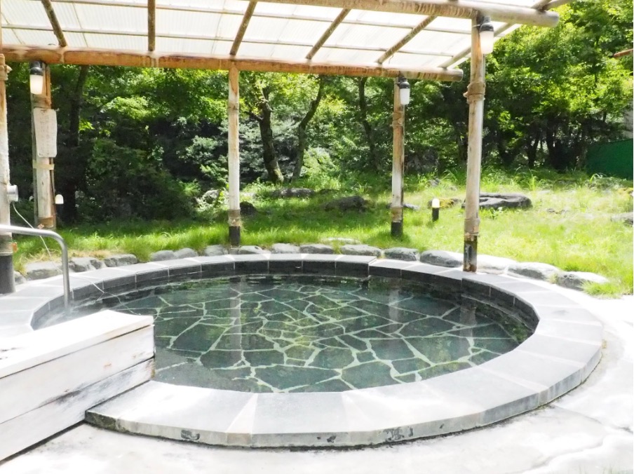 町内の日帰り温泉では数少ない露天風呂で、湯船に入りながら迫力ある山肌を望めるのも、推しポイント。秋から冬は寒さ対策でカバーがかかるので、景色を楽しむなら春〜夏がおすすめです。