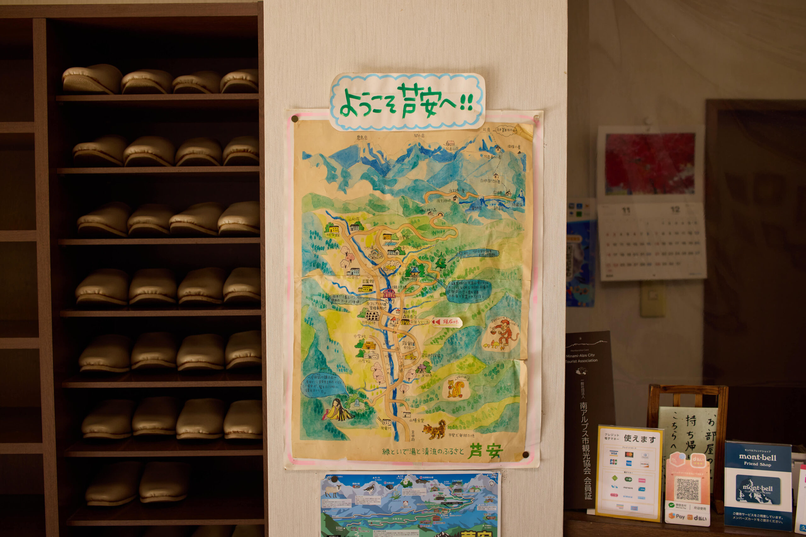 玄関にはお手製のマップが。もちろん北岳には「日本第2位の山」と書かれている。