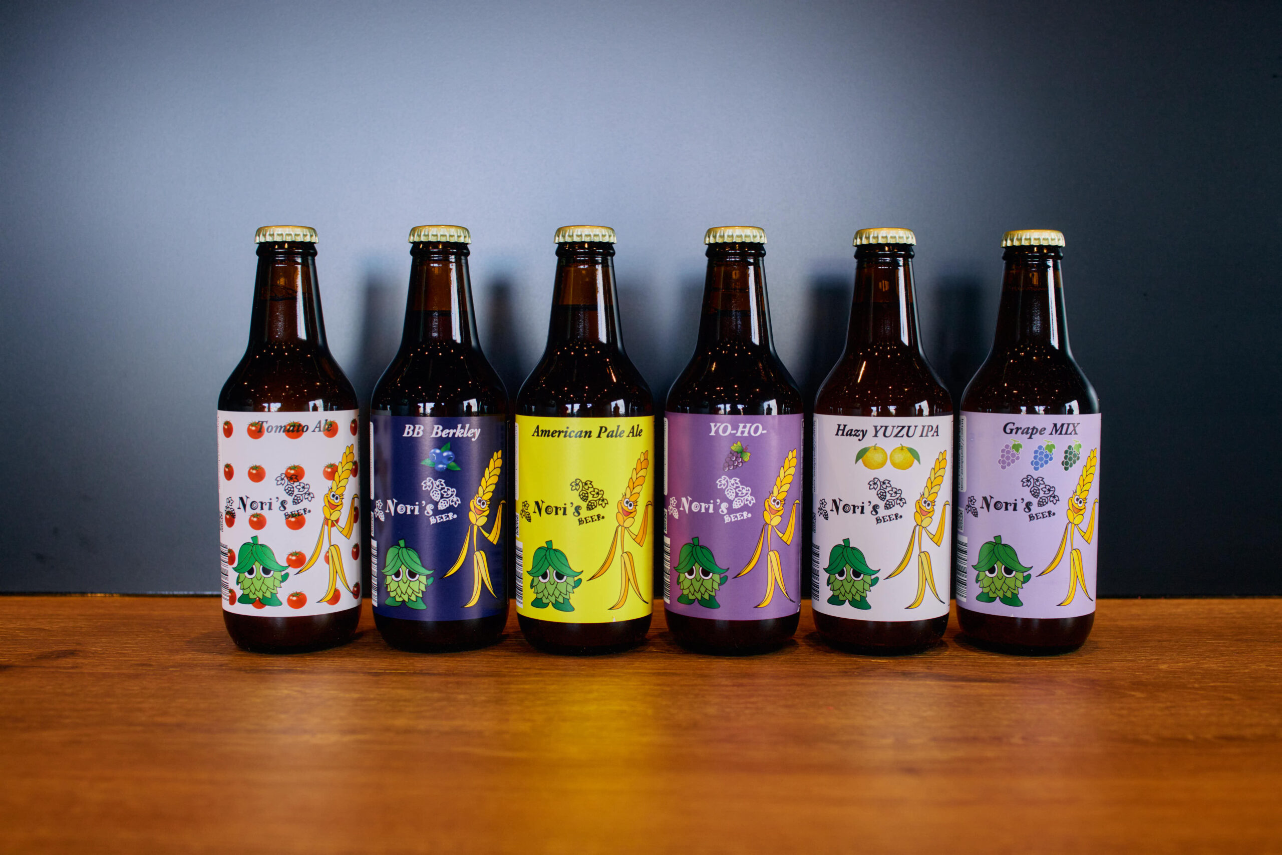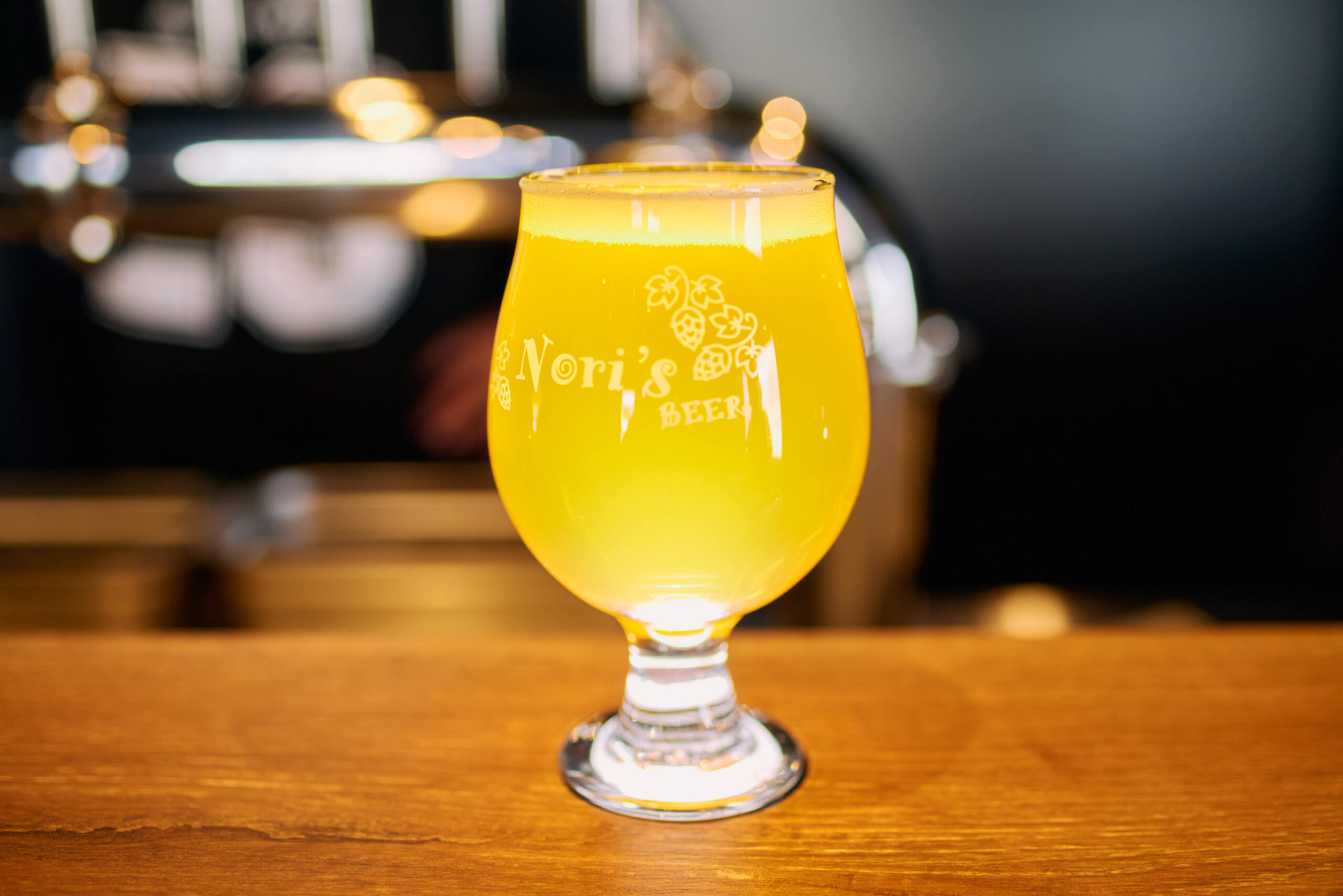 山梨県内のフルーツやお茶を贅沢に使って造られるNori’s Beerのクラフトビール。「はじまりは、仕事で訪れたカリフォルニアで出会ったホップ畑。20代の頃からビールが大好きで、自分好みのビールを造りたかった」と話すNori’s Beer代表の佐野則寛さん。自分でもビールを造れると知り、すぐに一通りの器具を揃えた。友人に教えてもらったお店に通い、何度も何度も造ったビール。研修や講習会にも参加して醸造スキルを高め、2023年に醸造免許を取得し、Nori’s Beerがスタートした。