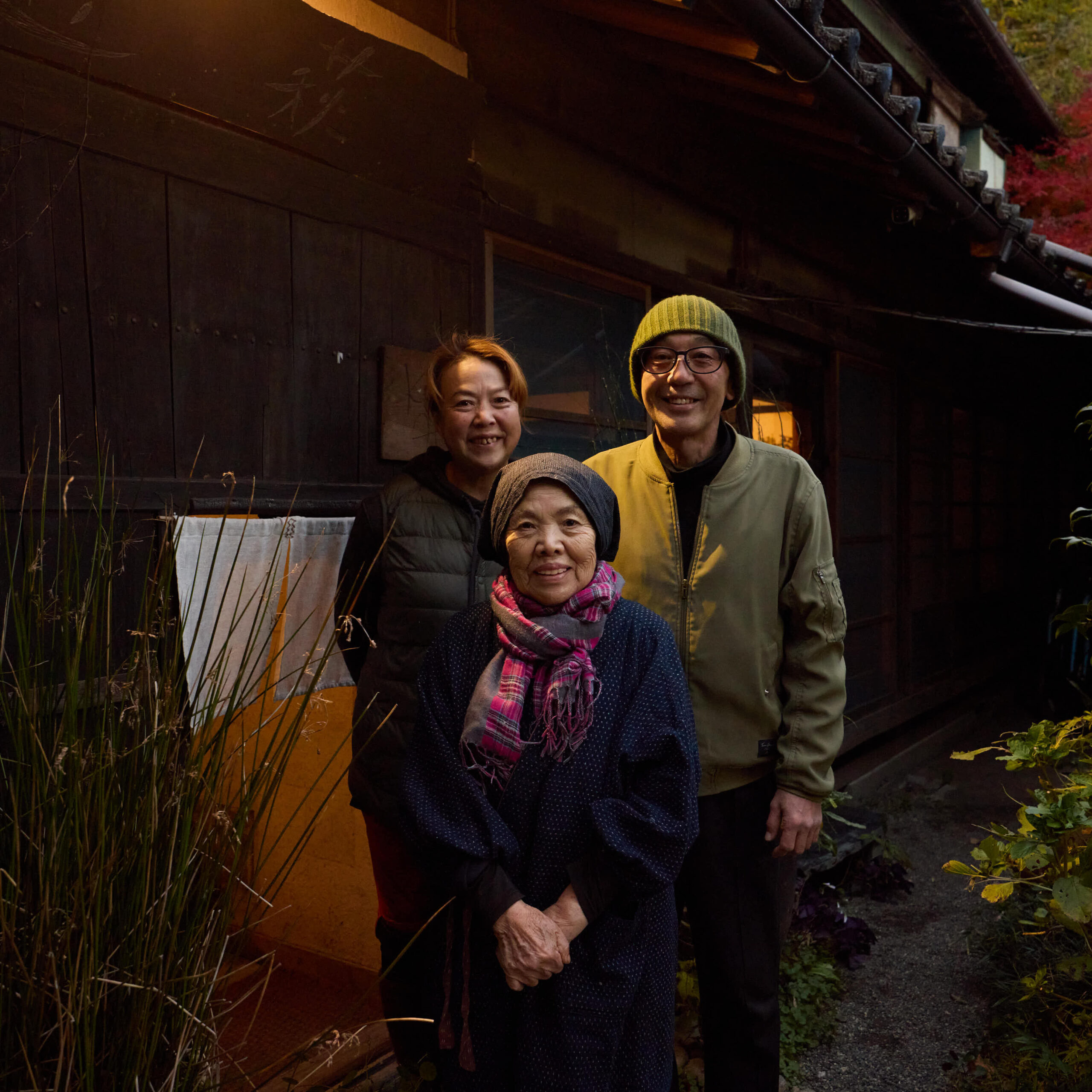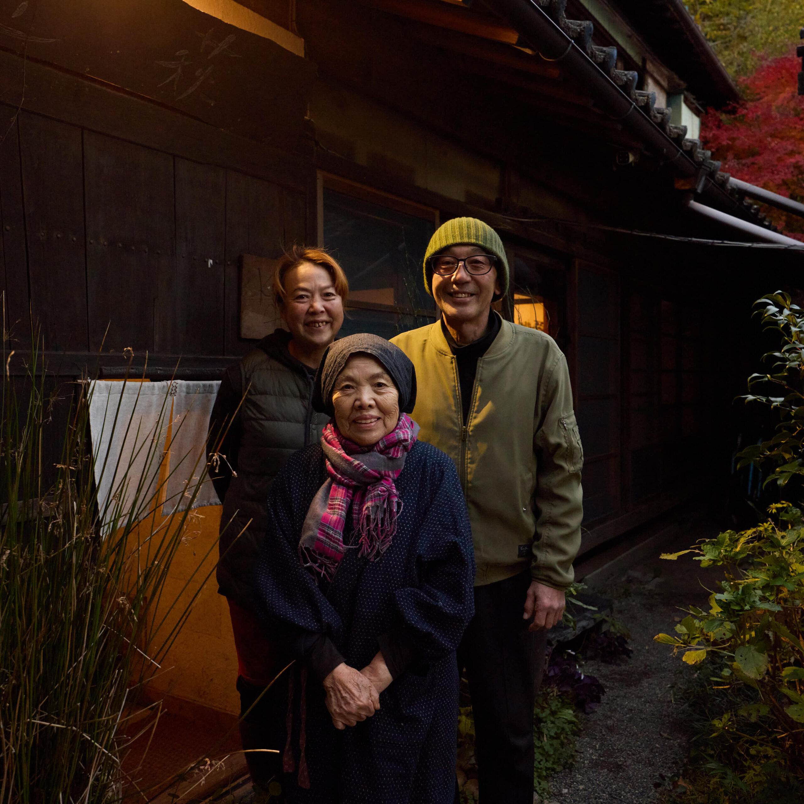 鈴木ケイタさん・ミキさんのご夫婦とミキさんの母・勇子さん。3人が包み込むような温かさでおもてなししてくれる。