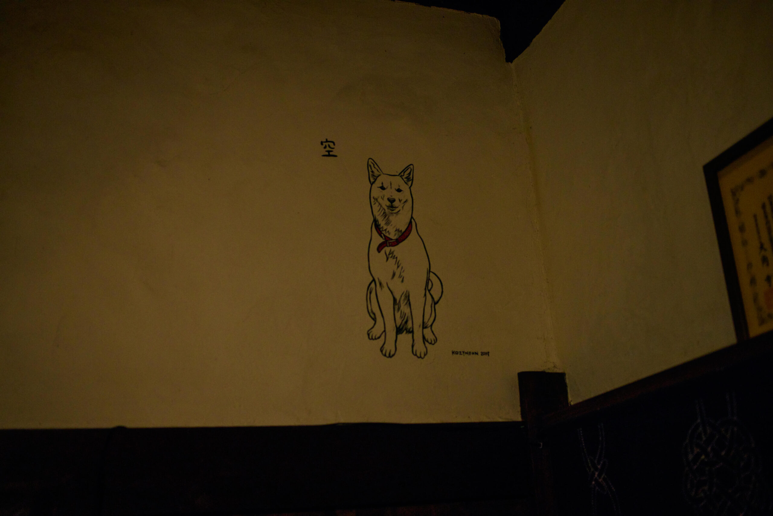 壁には、宿の名前の由来にもなった勇子さんの愛犬・くうのイラストが。