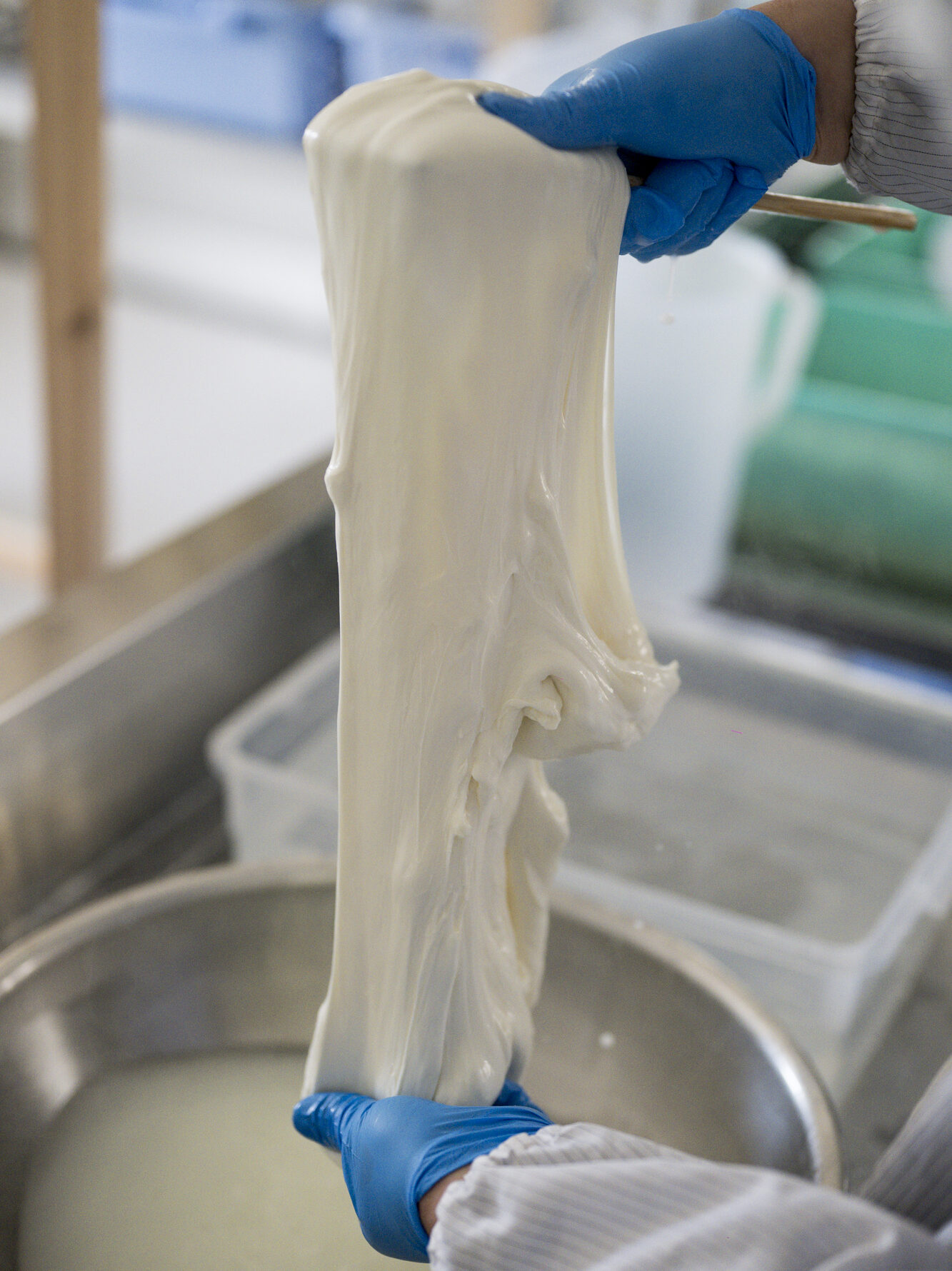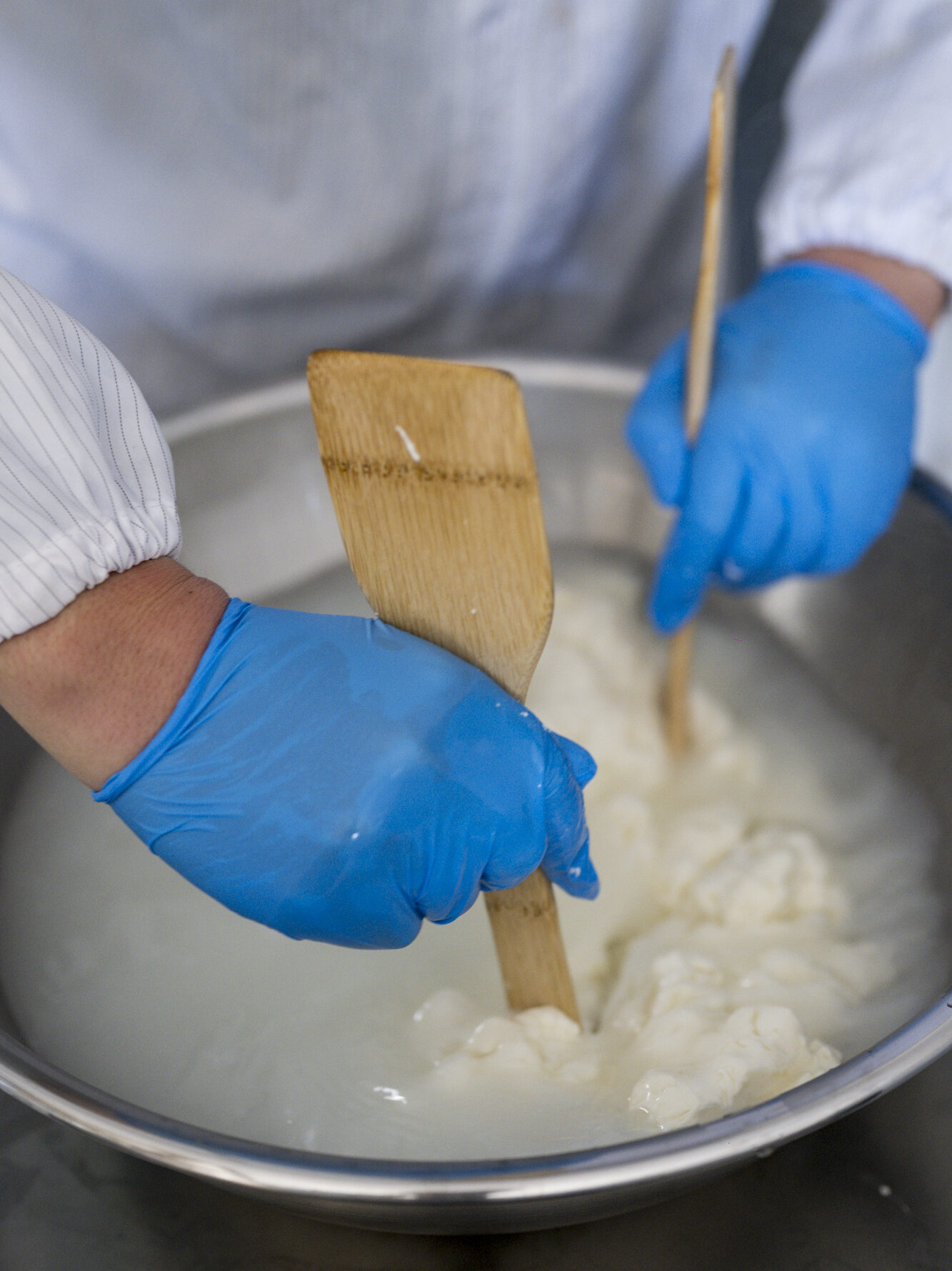 チーズ作りの工程の一部。趣味から始まったとは思えない、確かな手仕事。