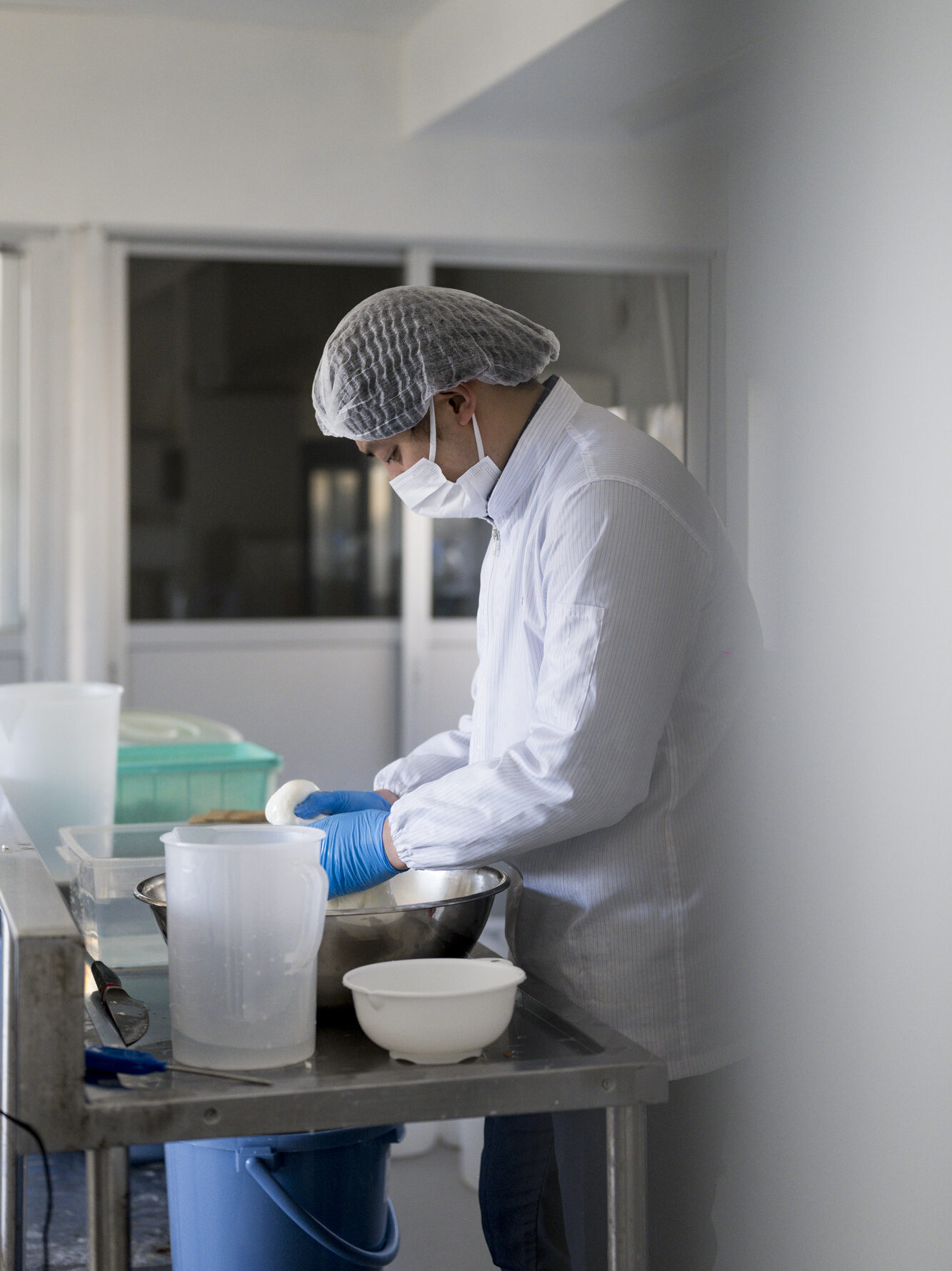 株式会社TBDEの創業者のひとりである武川さん。日々工房で、理想の味を求めてチーズと向き合う。