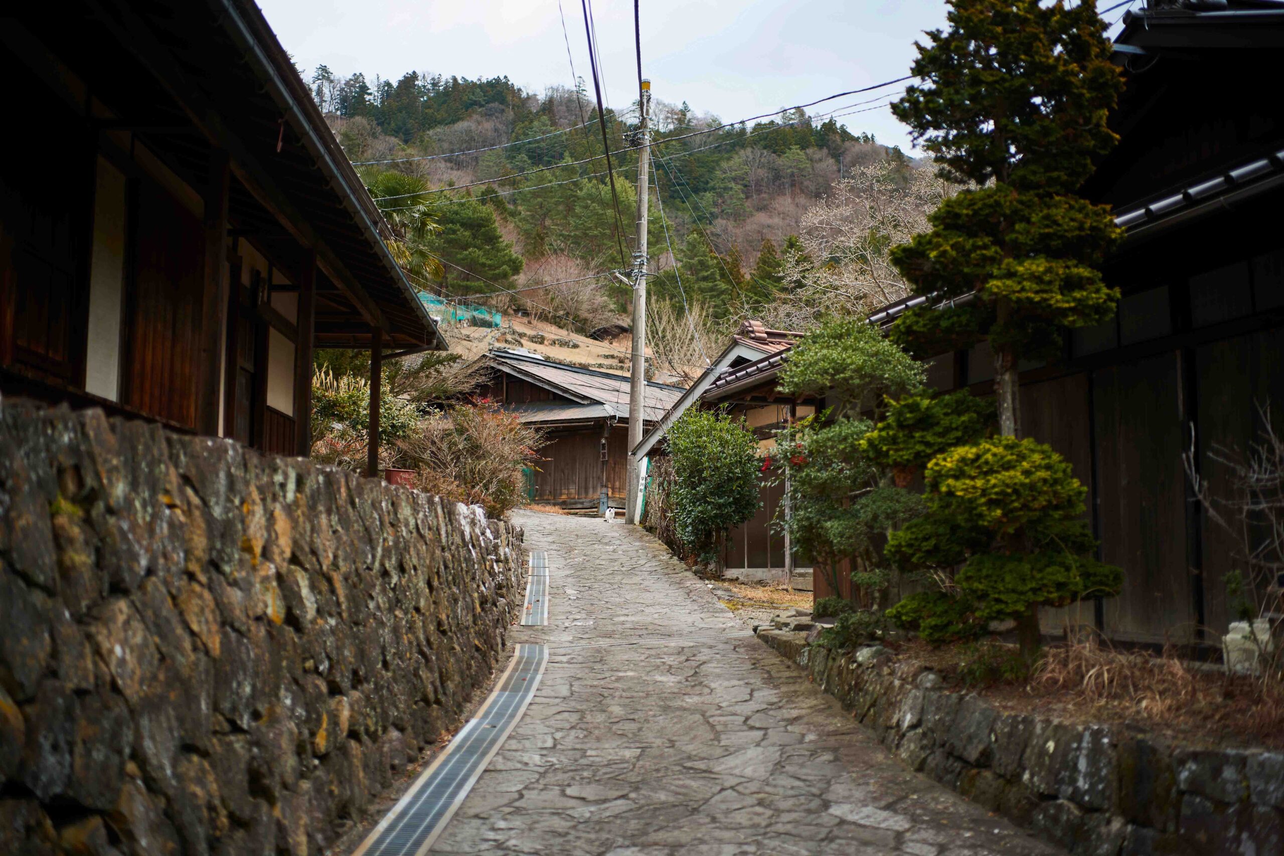 日蓮宗総本山の身延山と霊場七面山を結ぶ参詣道の途中に、赤沢宿と呼ばれるかつての宿場がある。江戸時代にグループで身延山に歩いて参詣する「身延講」が盛んになったため、この参道は早くから整備されていたという。石畳のメインストリートは約800m続き、栗板の屋根や雨戸を備えた木造家屋が連なる町並みが、国の重要伝統的建造物群保存地区に選定されている。一歩、足を踏み入れると、ありし日にタイムスリップしたかのよう。