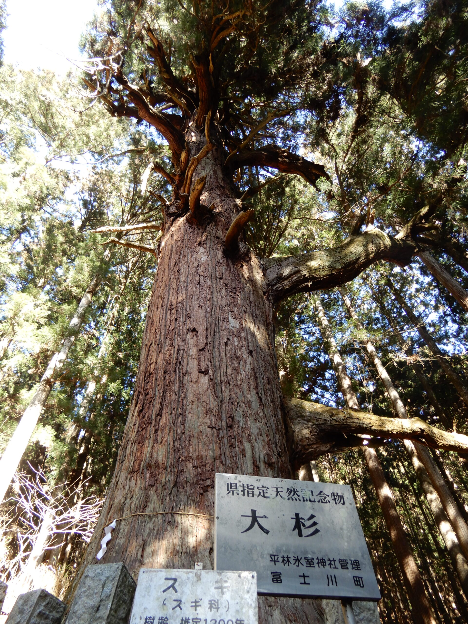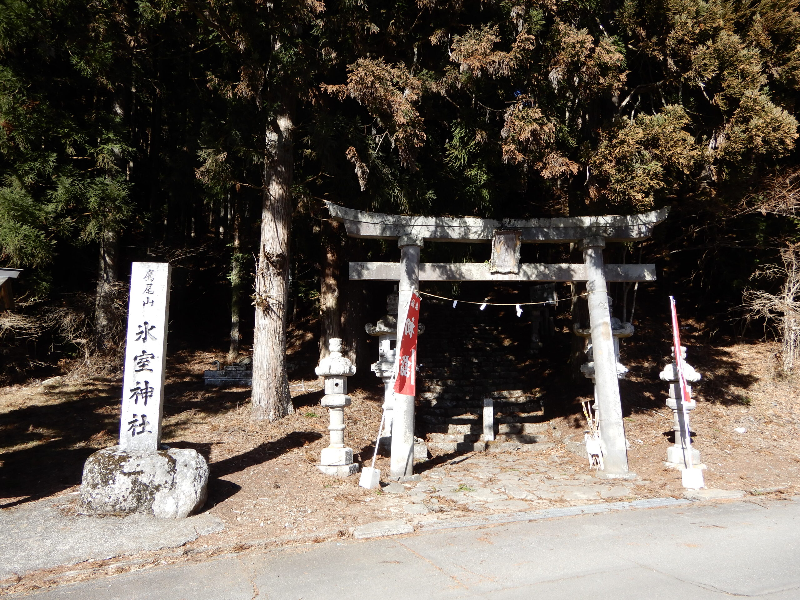 1月中旬、氷室神社に向かう道中 平林からの棚田と富士山。