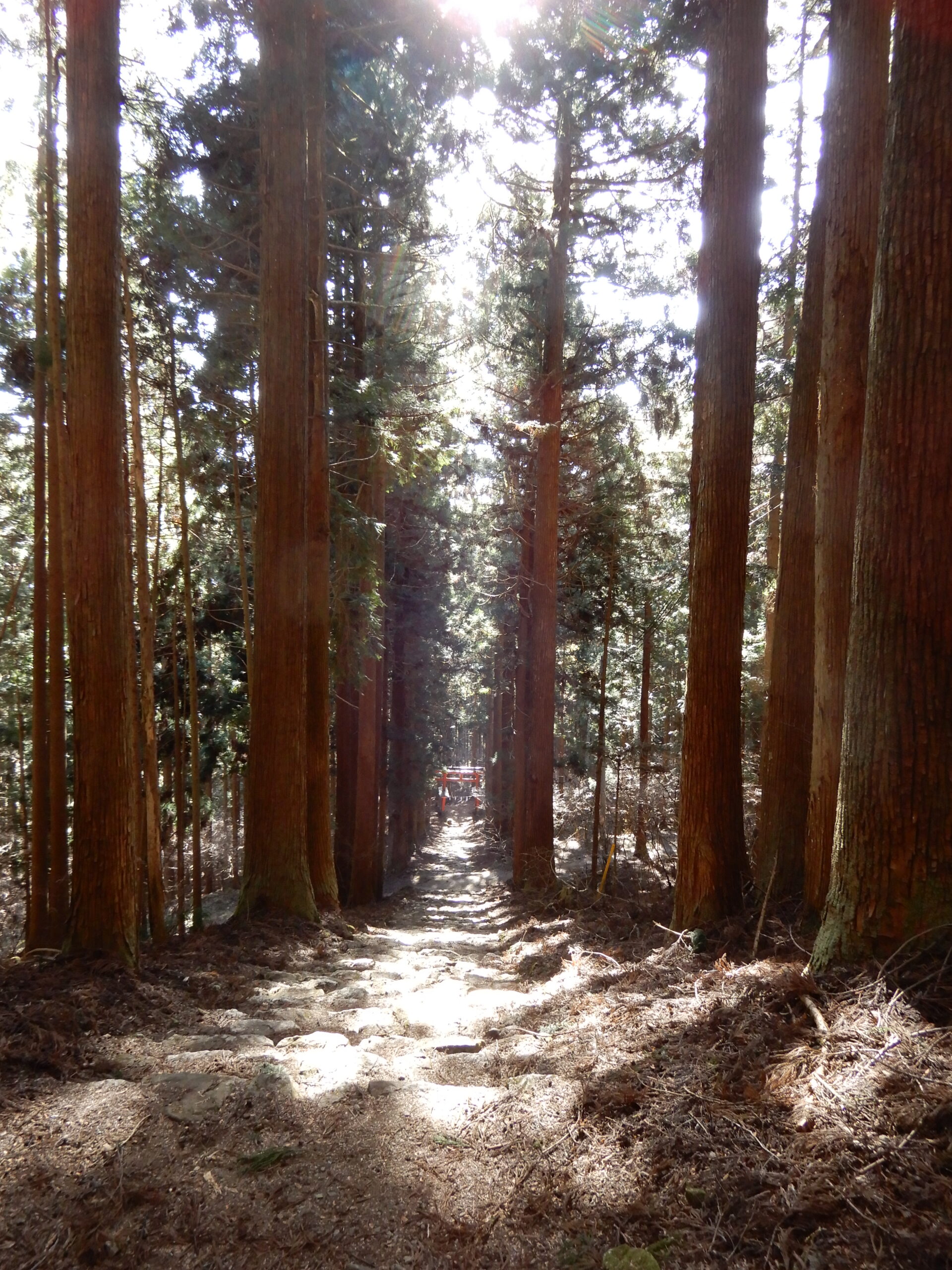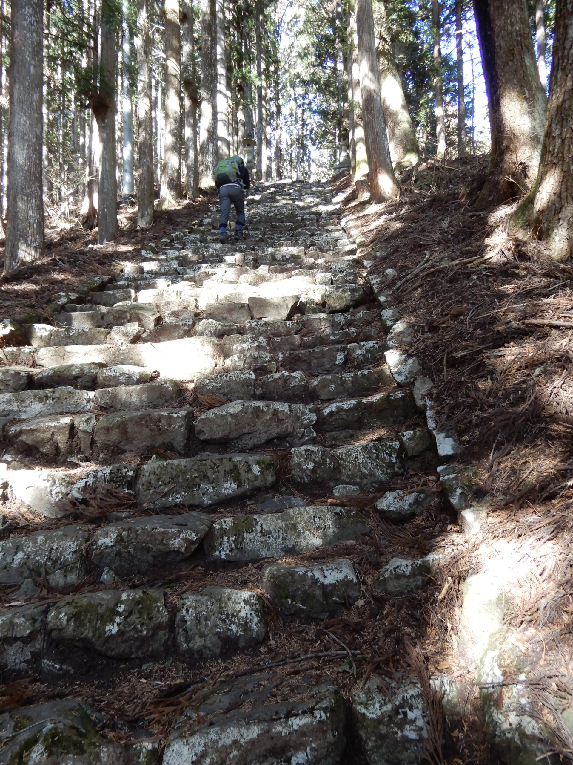 急こう配で、苔むしている不揃いな石段ですので、足元に注意して登っていきます。 運動不足の私は 350段あたりで、だいぶ息がきれてしまいました。
