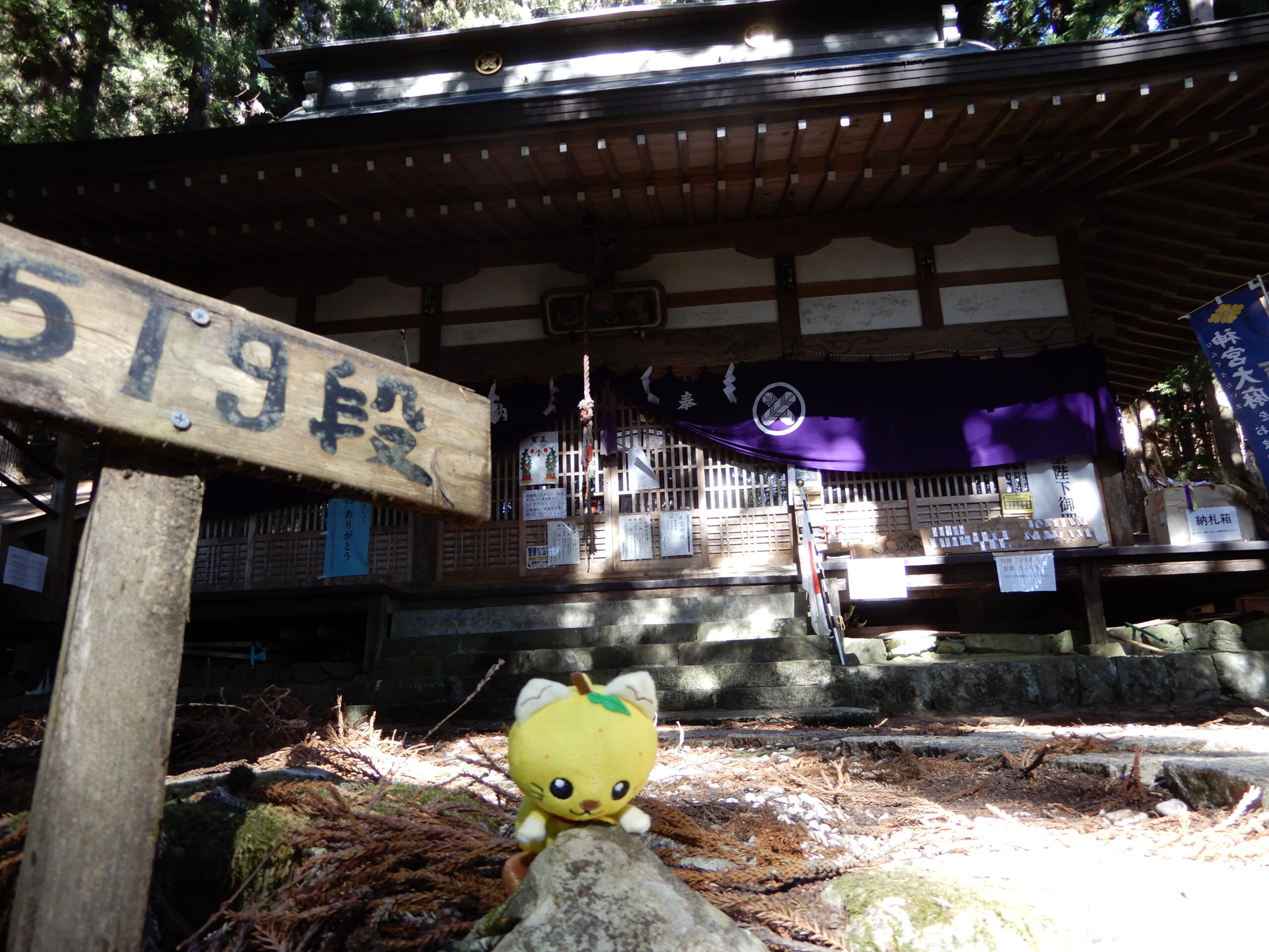 519段を登り切り拝殿に到着。しばし休憩した後、ゆずにゃんと参拝しました。