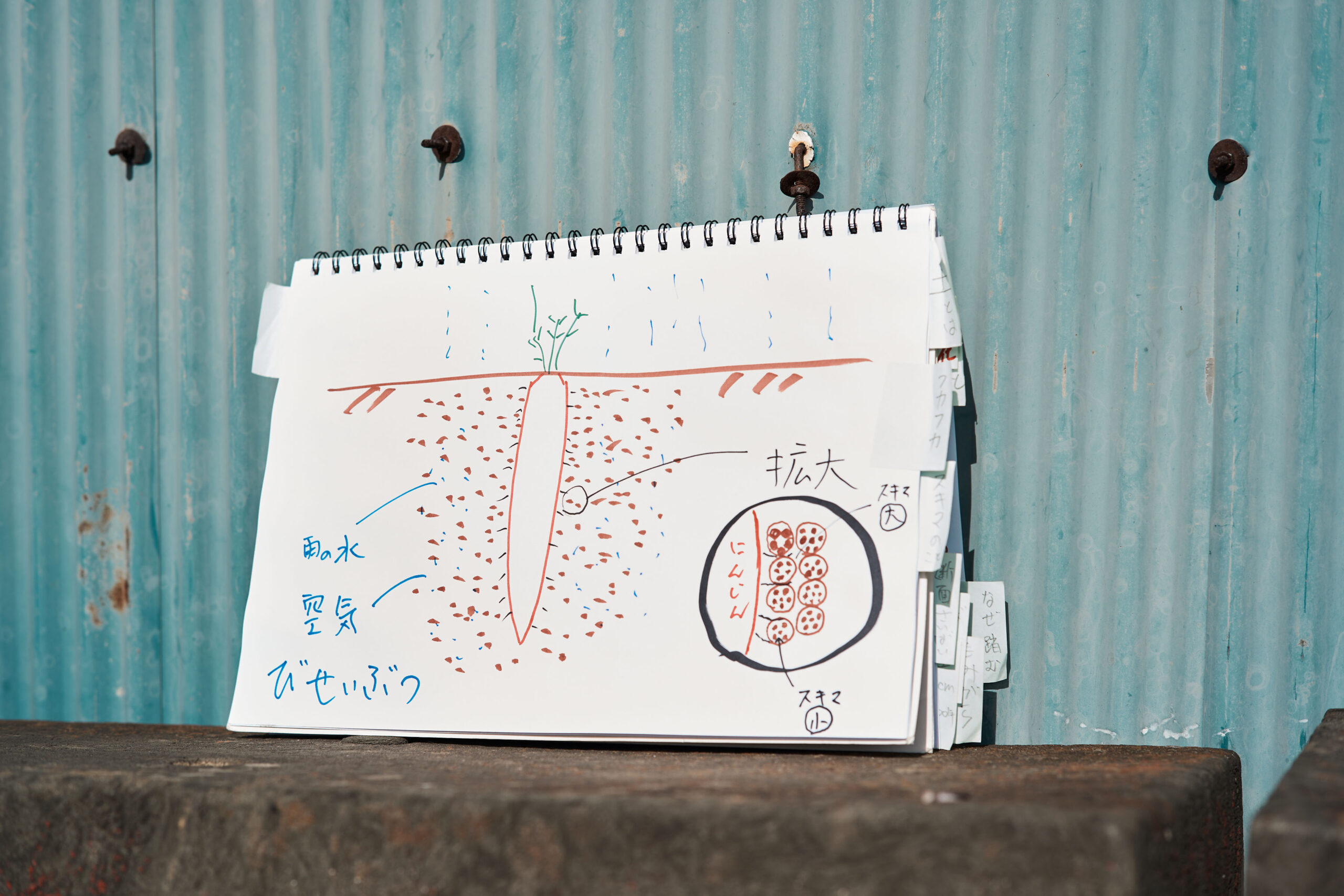 土の中でどんなふうに大塚にんじんが育つのか、分かりやすく図解。こちらもお手製。