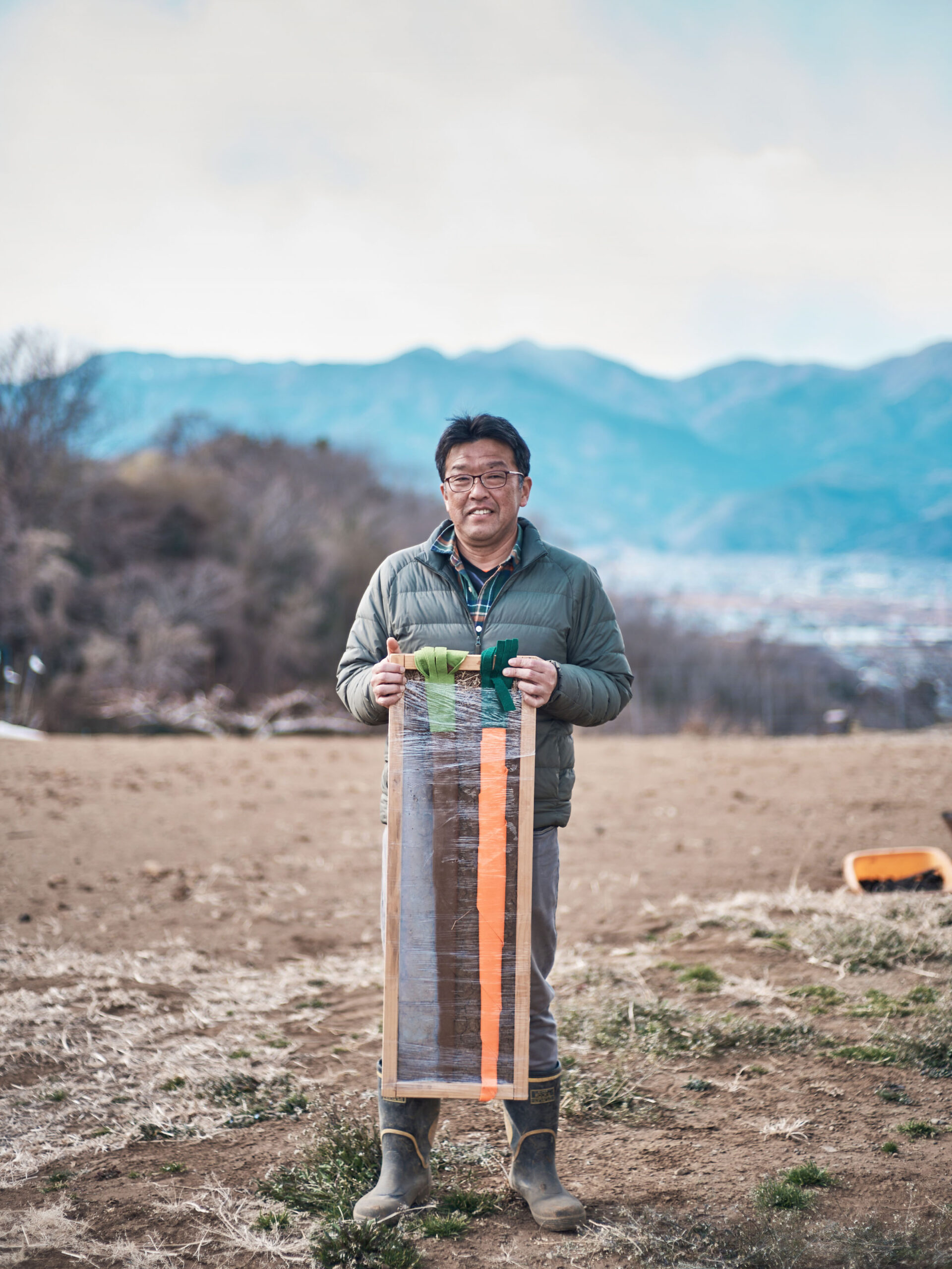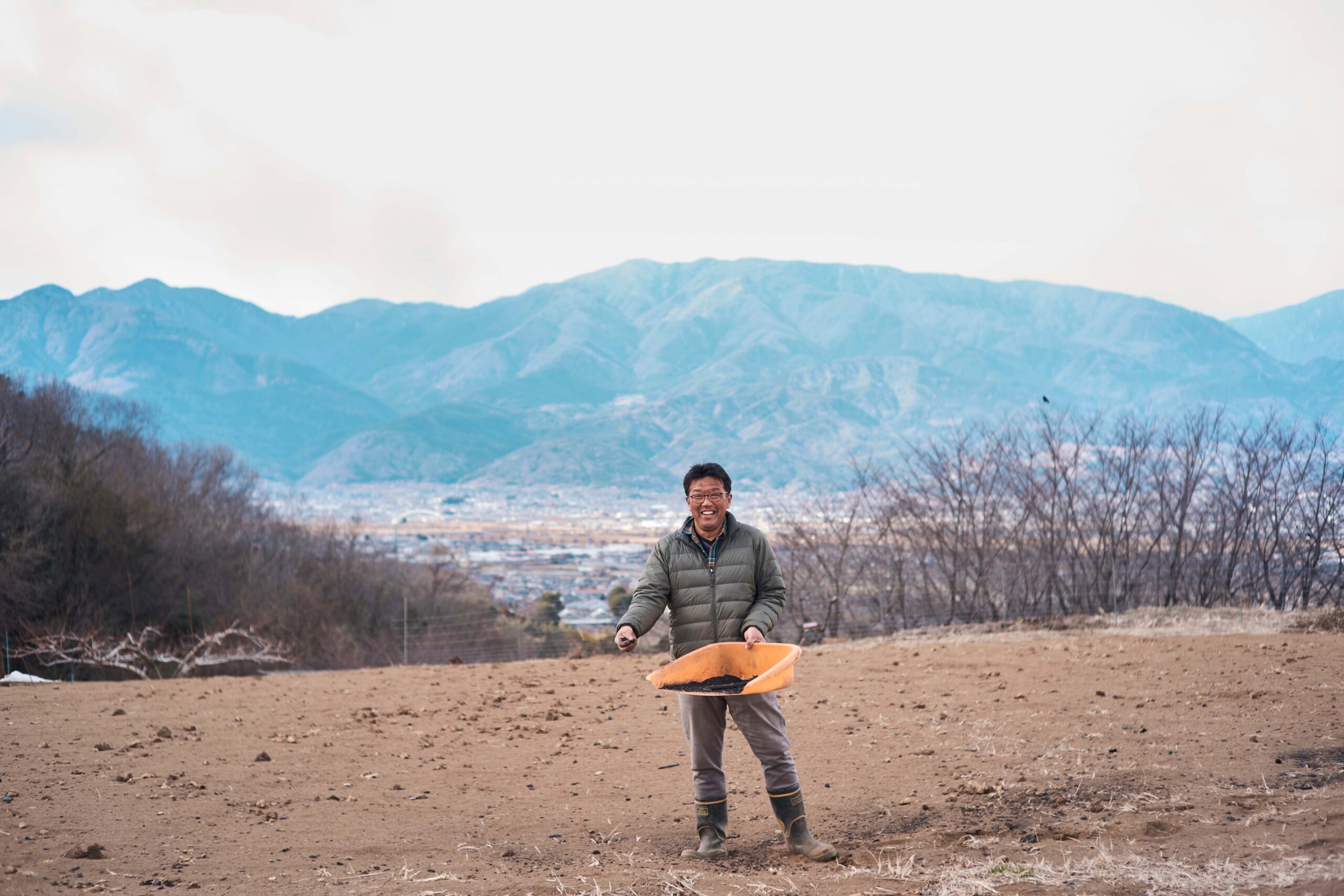甲府盆地の南端、市川三郷町・大塚地区。7000年以上前に八ヶ岳等が噴火した際の火山灰や落ち葉などの有機物が長い年月を掛けて積み重なり、独自の黒ぼく土(赤褐色黒ぼく土)が形成された。さらさらとした質感でやわらかく、通気性や保水性、水はけに優れた土は「のっぷい」と呼ばれ、地域の宝となっている。大塚地区では、こののっぷいに適した大塚にんじんをはじめ、大塚ごぼうやとうもろこしといった野菜を生産している。この“のっぷい”に惚れ込んだのが塩島さんだ。