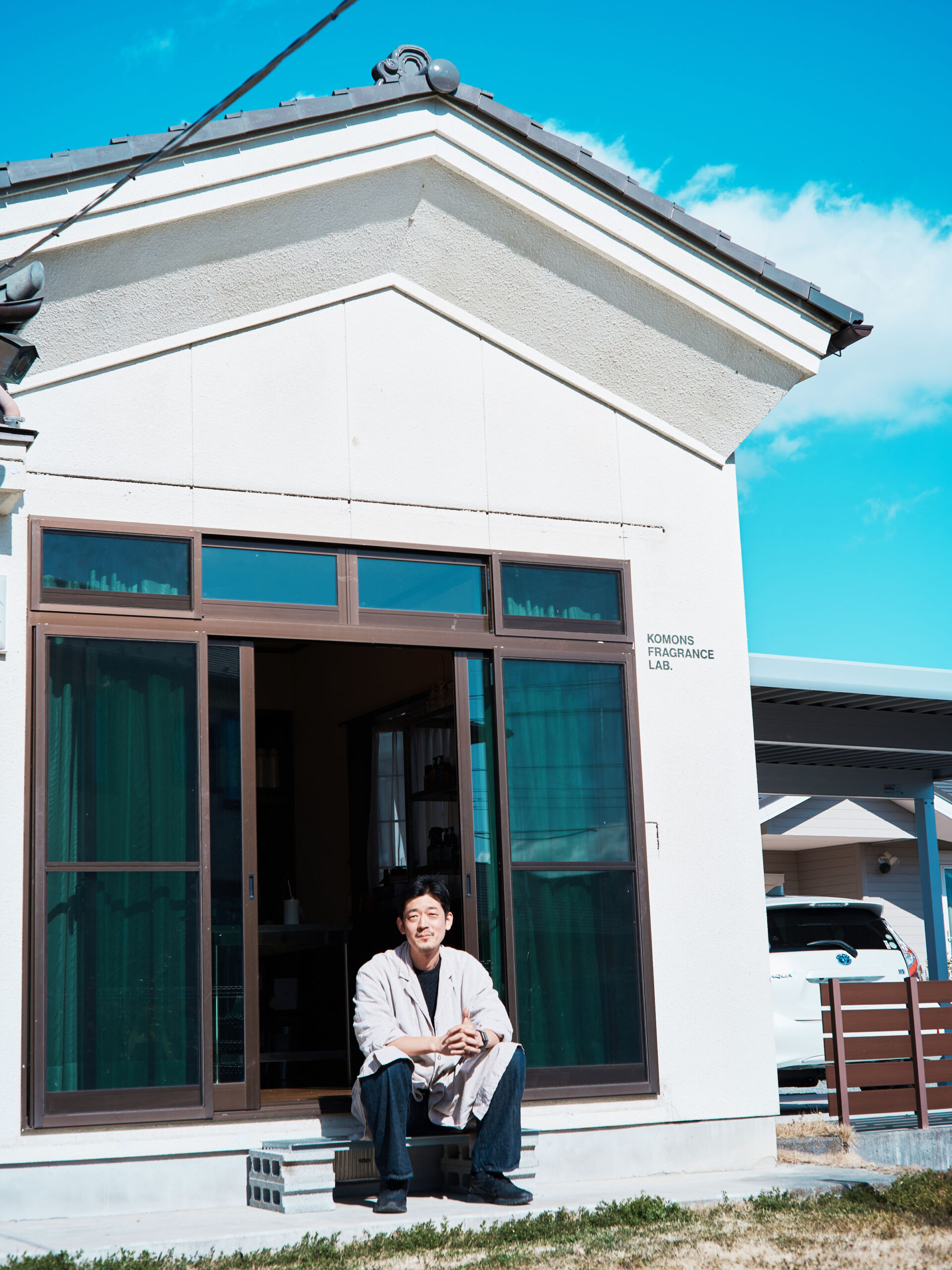 南アルプス市の住宅地に、地図にも載らない小さな香りの工房「Komons Fragrance Lab.」がある。代表・有井 誠さんは、小さな頃住んでいた実家の建物と祖父が50年前にぶどう栽培のためにつくった小屋をリノベーションして、天然香料にこだわった香りの実験を行うラボをつくった。ここで生まれるのは、日々の暮らしの時間を整え、そっと彩りを添える“いい香り”。