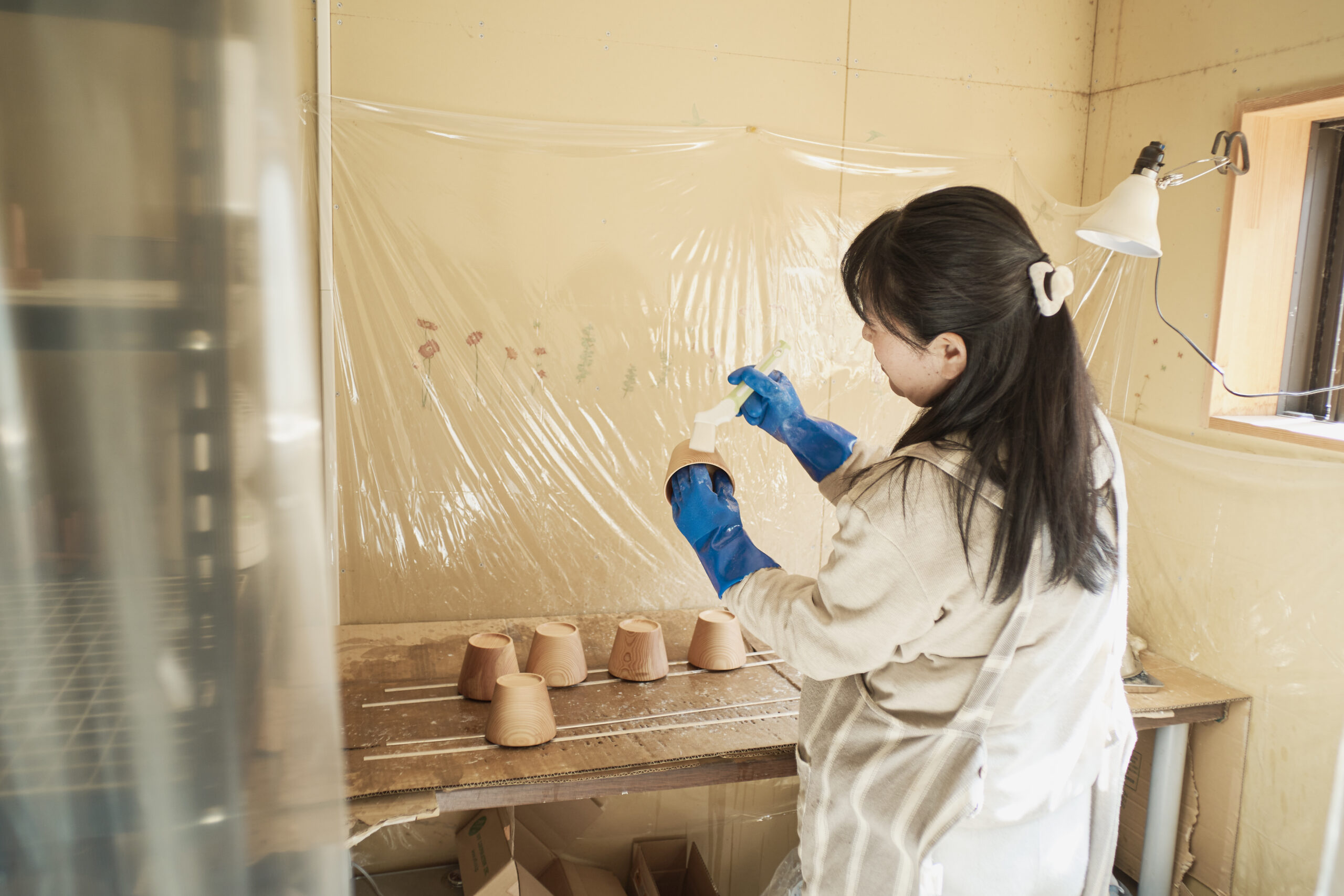 器の塗装は芽衣子さんが担当。ひとりで向き合う作業のため、明るく日当たりのいい場所を作業スペースにしているという。