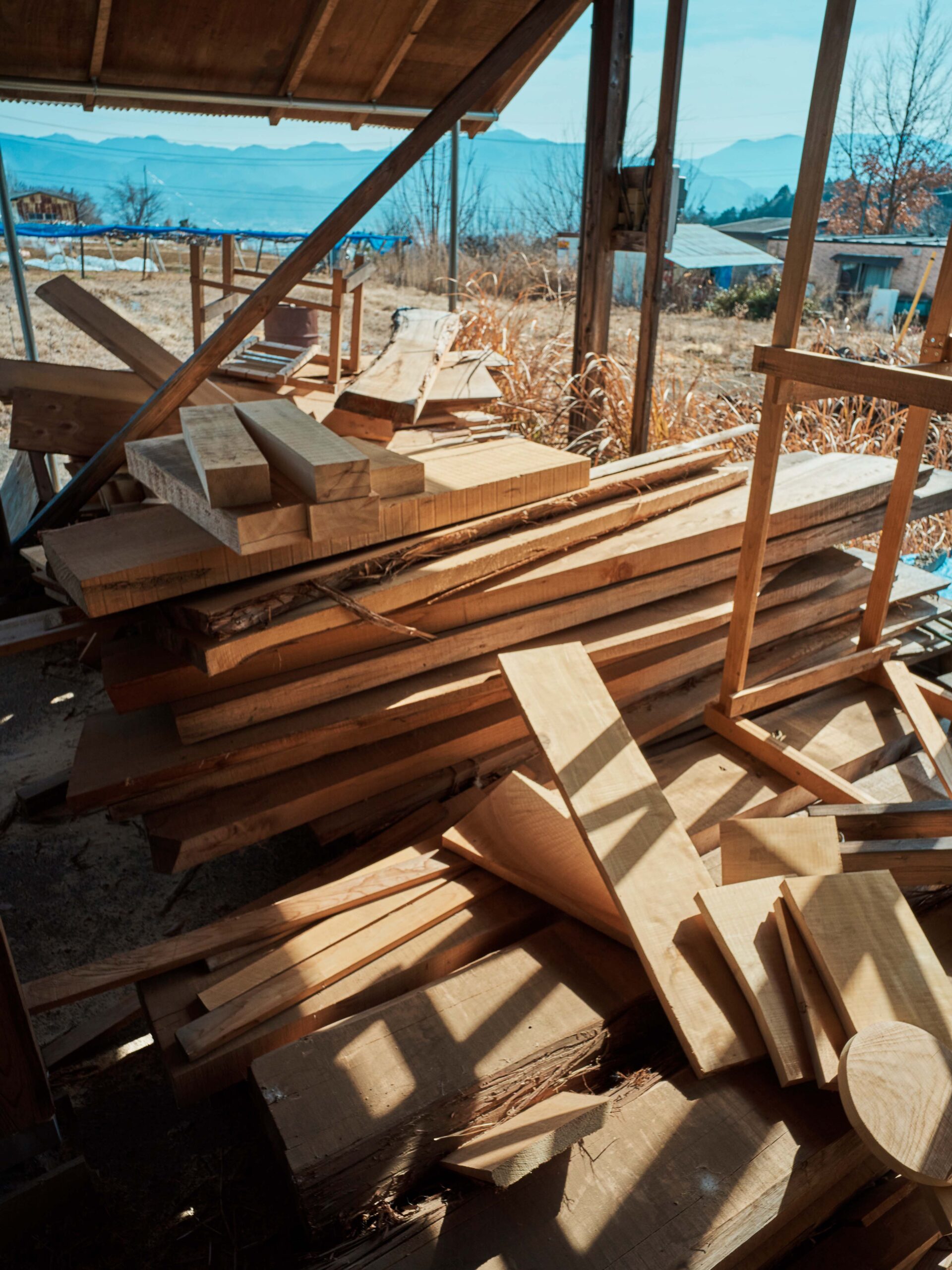 木工の技術を学んだのは、長野に残っていた奥さまの祖父の作業場だった。趣味として通いながらさまざまな木工の機械に触れ、独学で少しずつ技術を覚えていったという。そんななかで、ベースとなる山梨県産の木を探し歩いていた時に、つながりのあった製材所で勧められた素材が「ヒノキ」だった。木工の世界では、ヒノキのような針葉樹よりも、硬さのある広葉樹のほうが加工しやすいと言われている。それでもヒノキを選び続けているのは、山梨の山で育った木であること、そして地域材として安定して手に入る素材だからだ。