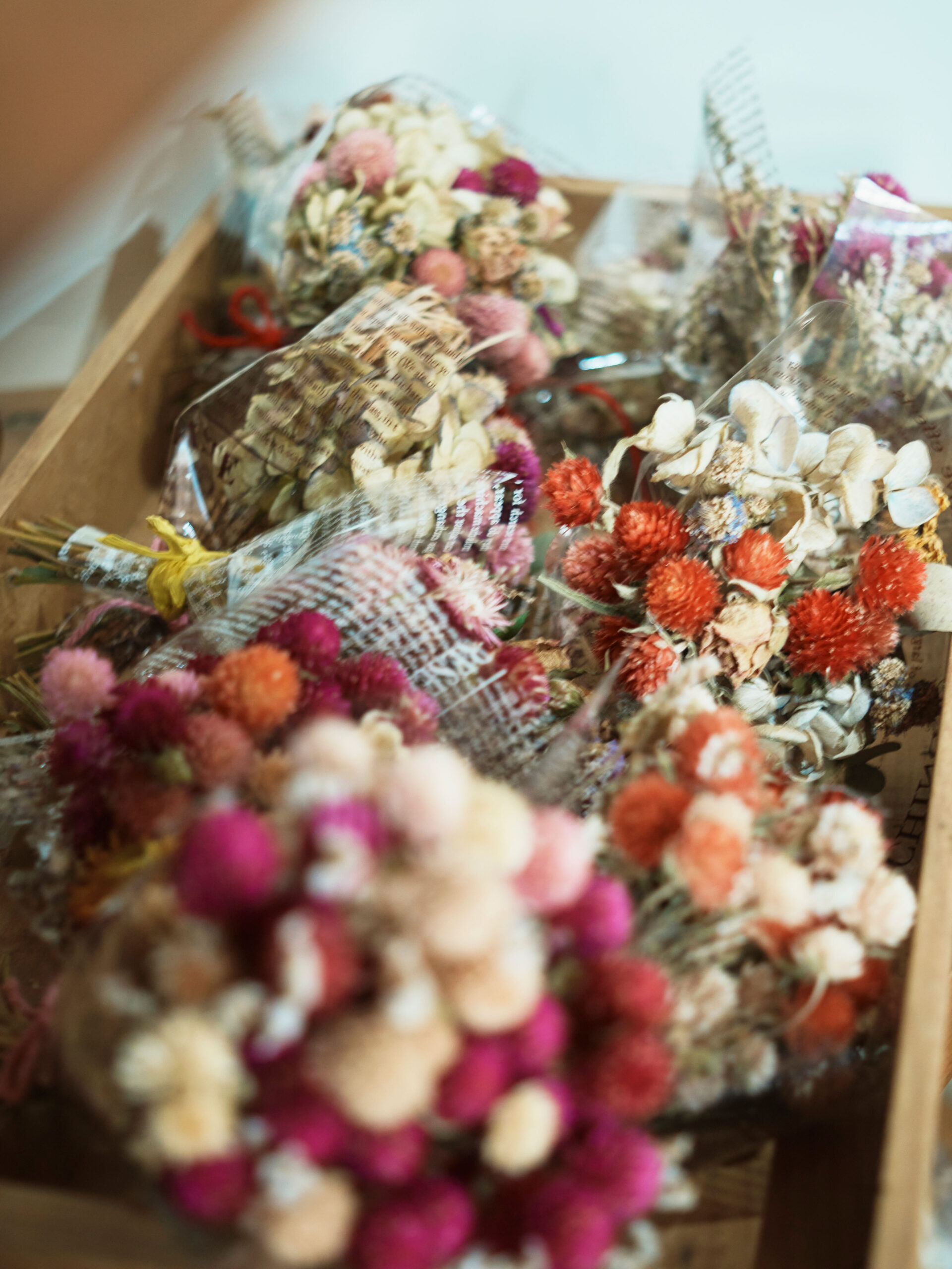 木工所の近くの畑で育てた花を使ったフラワーアレンジメント。季節の移ろいを感じさせてくれる。