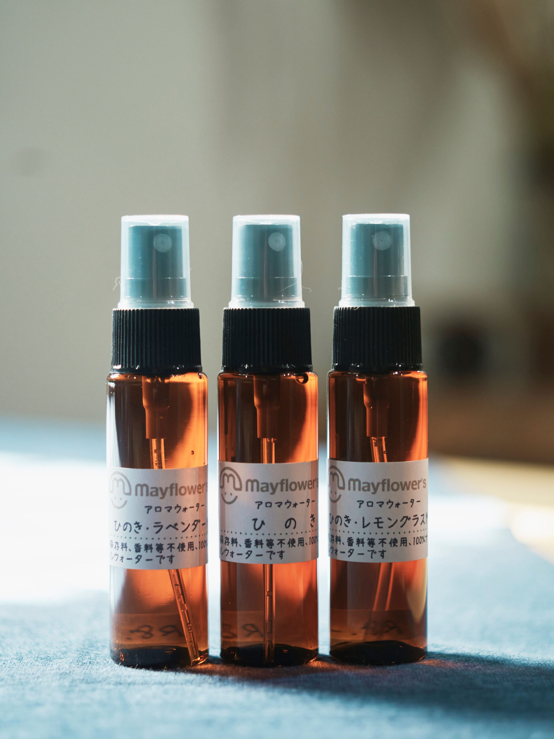ヒノキの精油を抽出する際に生まれるアロマウォーターも製作。爽やかな森林の香りが広がる。