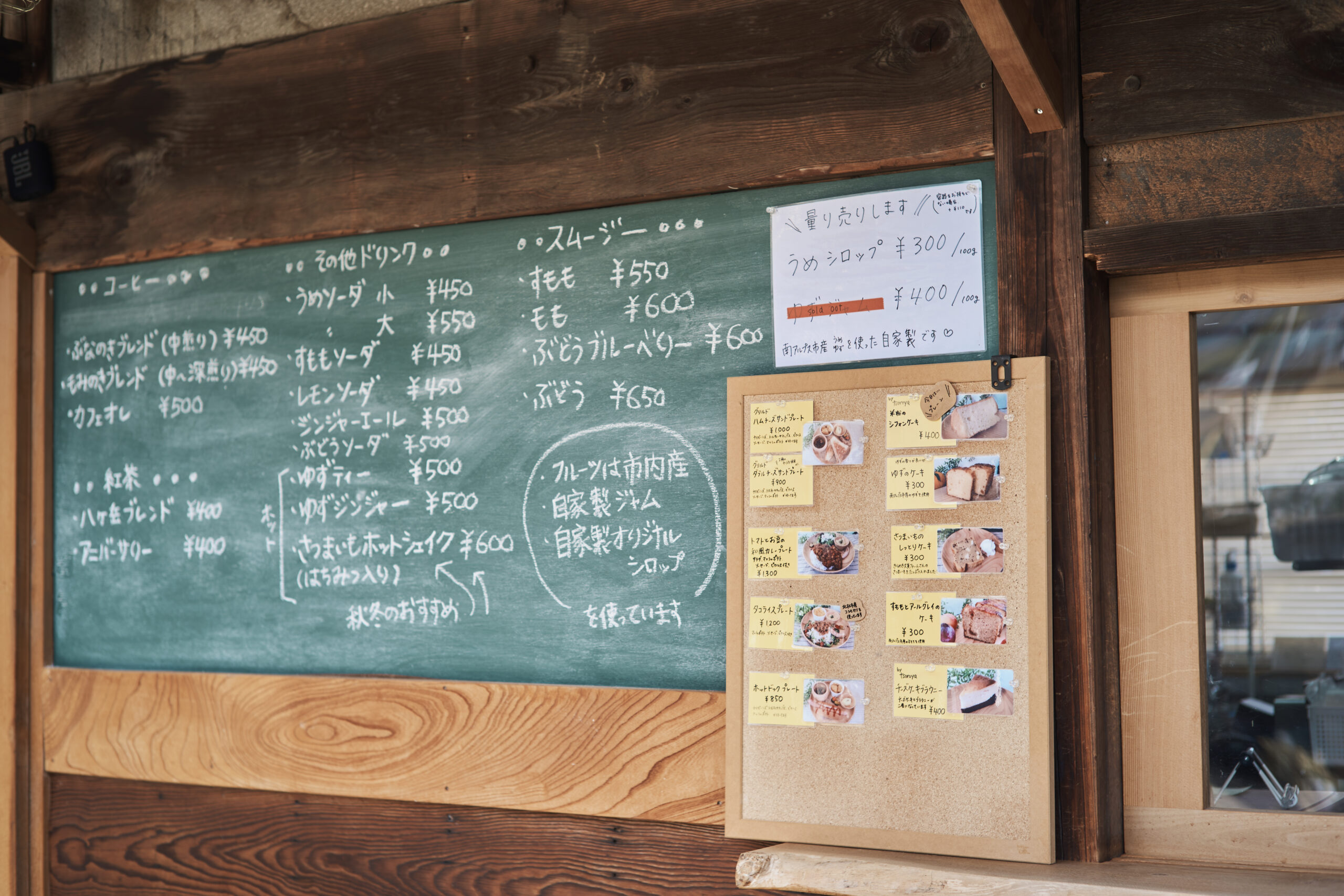 「器を実際に使ってもらえる場所を作りたかったんです」。和也さんのそんな思いから生まれた併設の談話室「ののせ」では、地域のフルーツを使ったドリンクやスイーツも楽しめる。桃、ぶどう、ゆず、ブルーベリー、キウイ。季節ごとの果物が使われるメニューは、どれも素朴でやさしい味わいだという。ヒノキの器で飲むコーヒーも、この場所ならではの楽しみ方。
