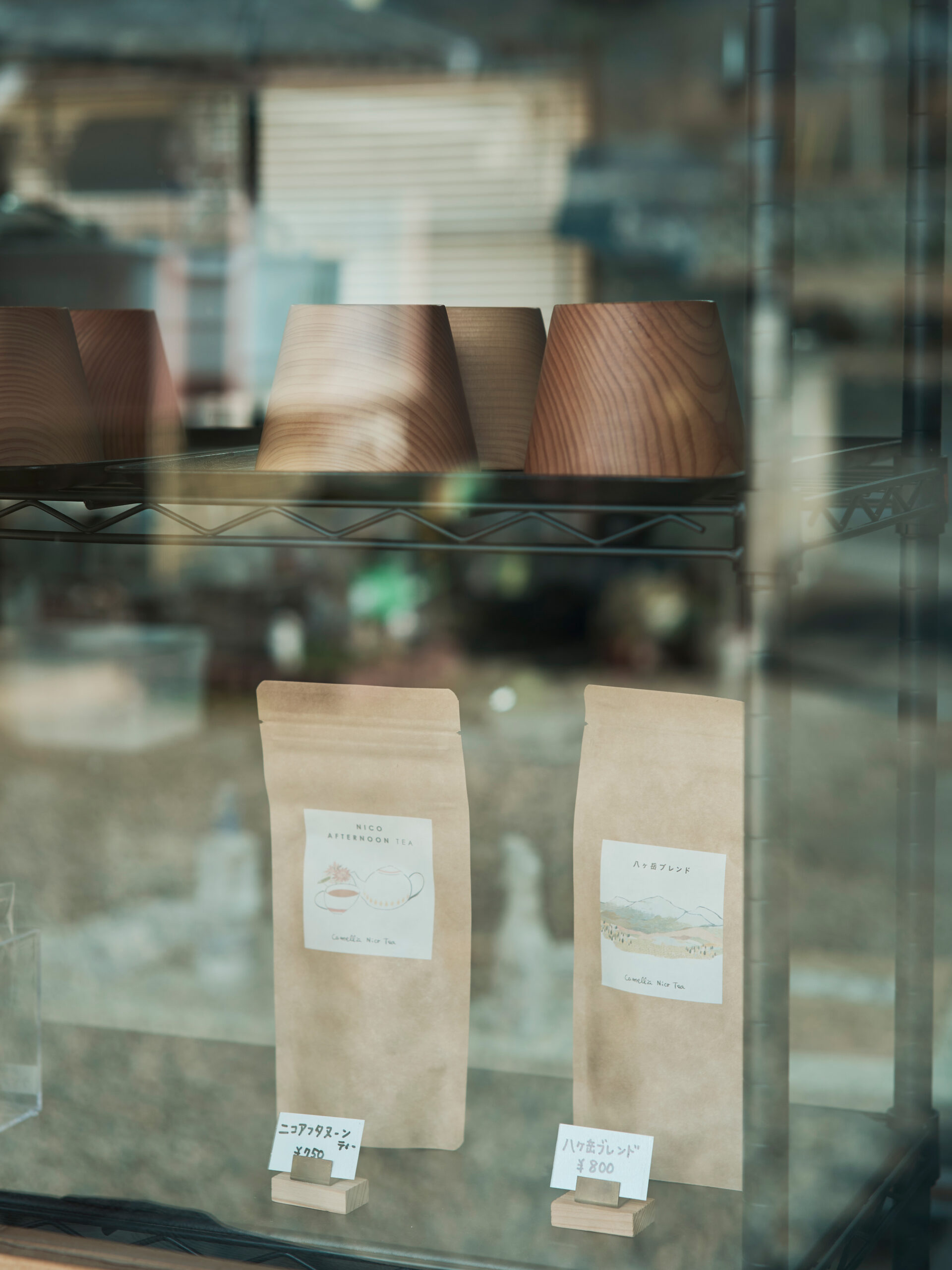 山梨県産ヒノキを使った軽やかな木の器と、自家栽培の花を活かしたドライフラワーやリースが並ぶ。柴田さんご夫妻が、それぞれ木工と花の仕事を分担しながら、地域資源を活かしたものづくりを続けている。併設の談話室「ののせ」では、季節のフルーツを使ったドリンクやスイーツも楽しめる。