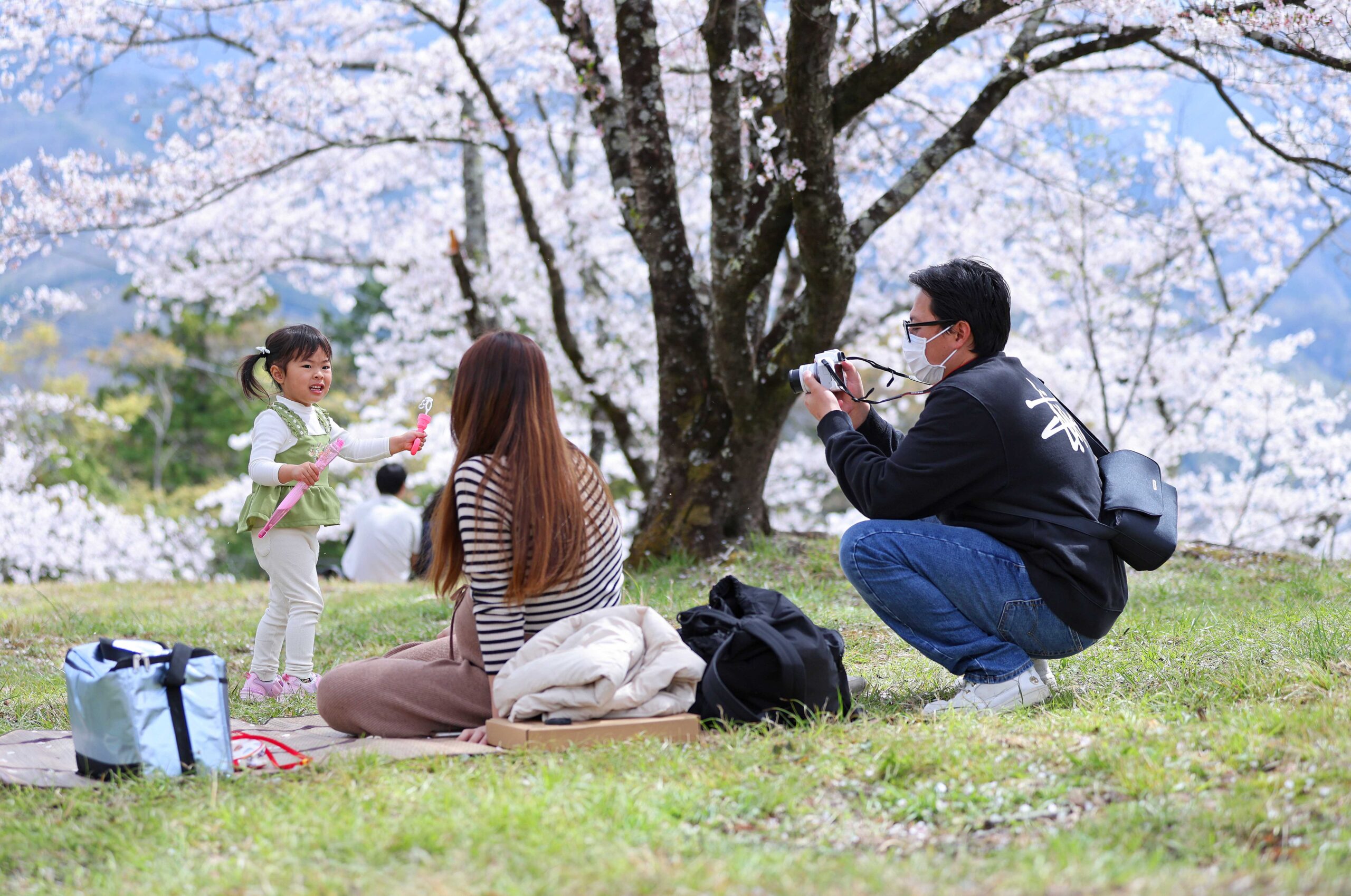 約2,000本の桜が咲き乱れ、満開の頃には小高い山全体が淡いピンクに染まります。