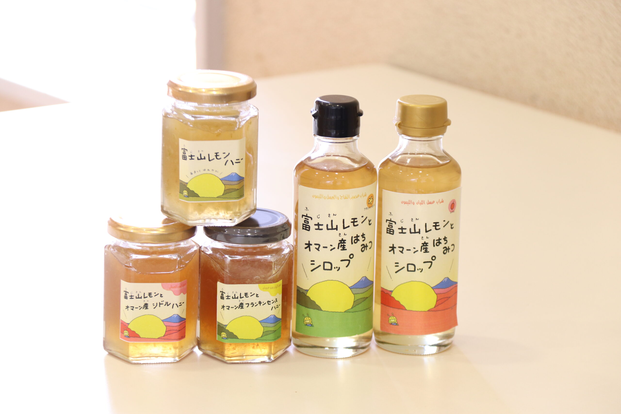 「シドル」や「フランキンセンス」といった、世界的に希少価値の高いオマーン産のはちみつと、市川三郷のレモンが融合したシロップやハニー。