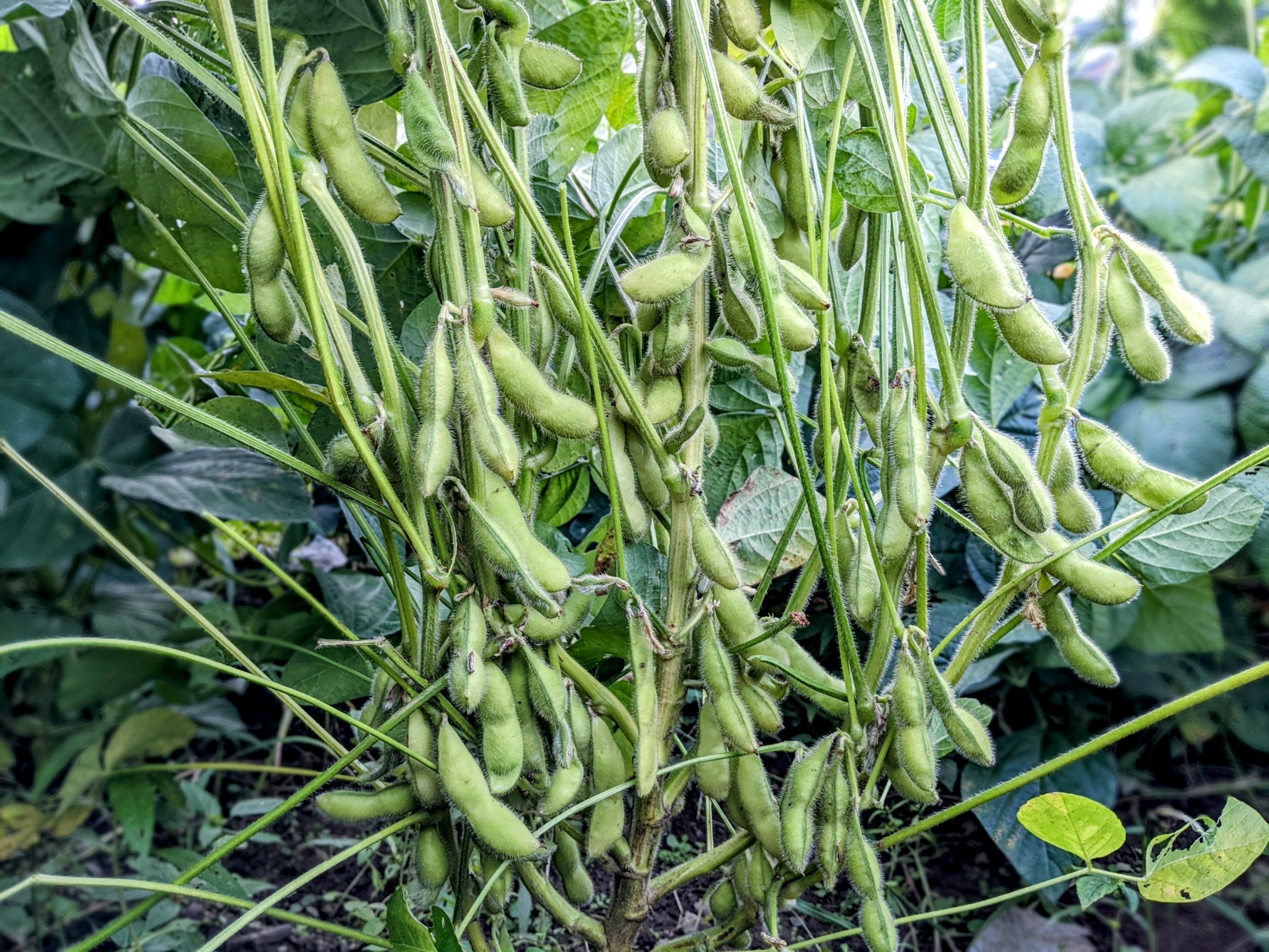 身延の肥沃な大地で、太陽の光を一身に浴びて青々と育つ大豆の葉の生命力には、圧倒されるものがあります。