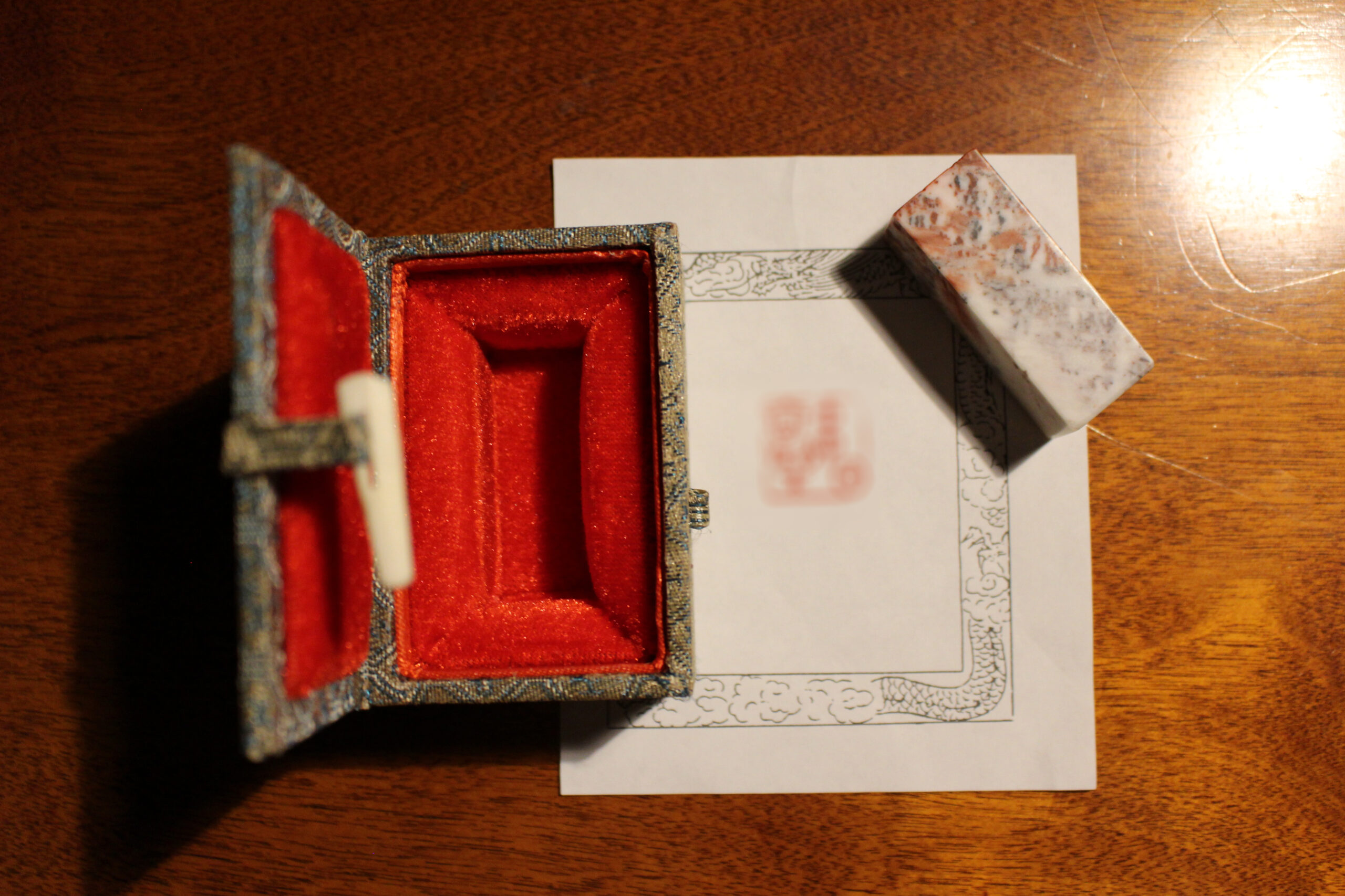 文字のデザインが決まり、ついに完成のご連絡をいただいて受け取りに行くと、ハンコは立派な箱に収められていました。