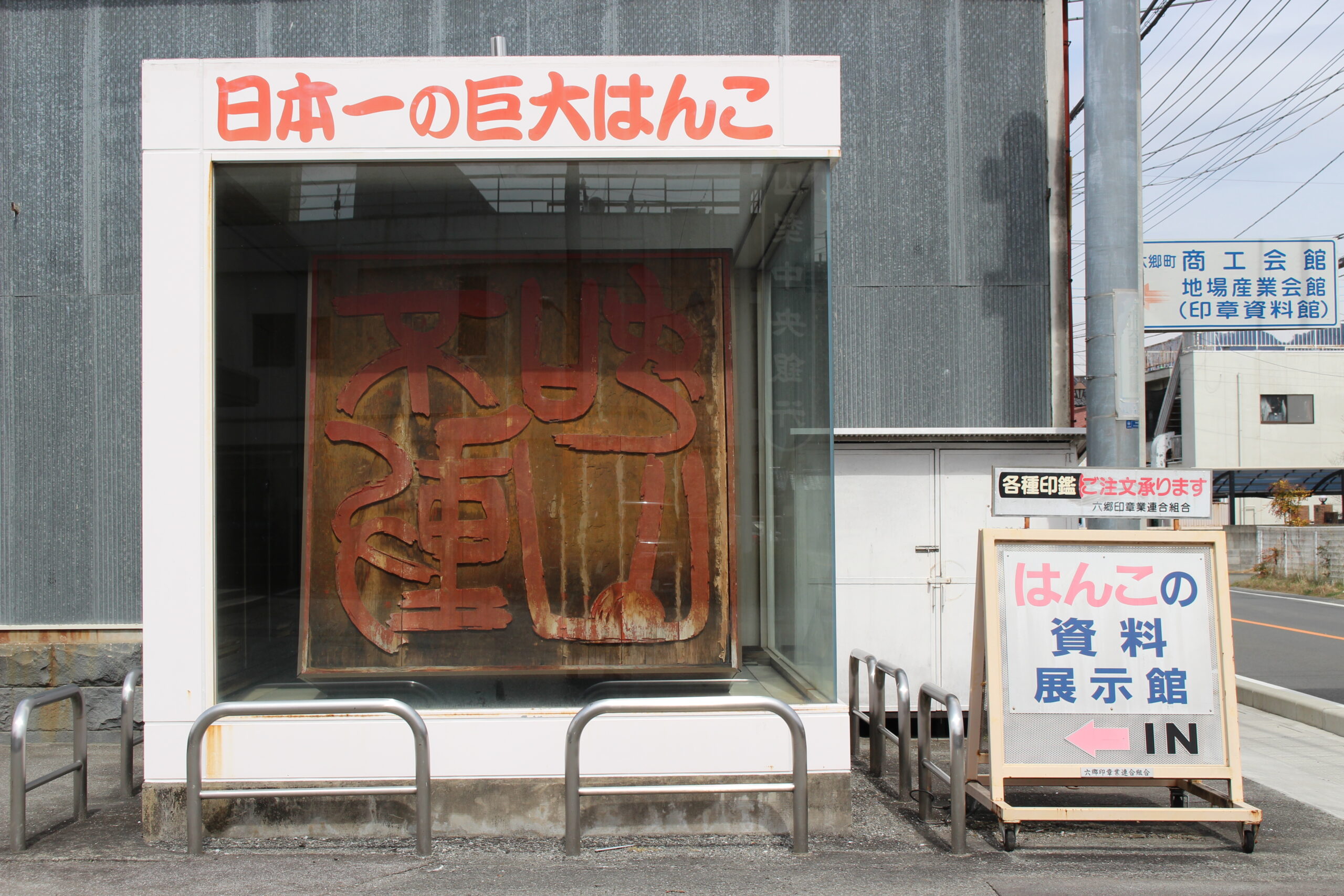 施設の前には、重量約3トンという「日本一の巨大はんこ」が置かれていて、その大きさに思わず目を引かれます。